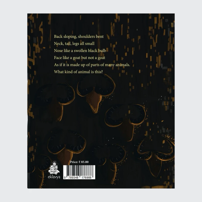 Back sloping, shoulders bent Neck, tail, legs all small Nose like a swollen black bulb Face like a goat but not a goat As if it is made up of parts of many animals. What kind of animal is this?